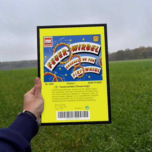 Weco Feuerwerk Feuerwirbel (Feuerringe) Raritäten Label eingerahmtes Poster
