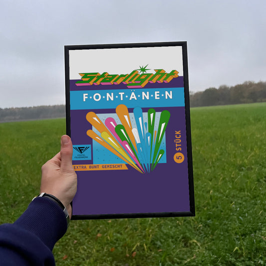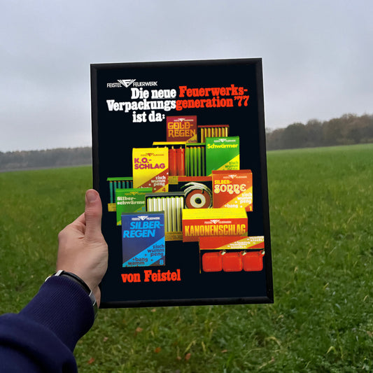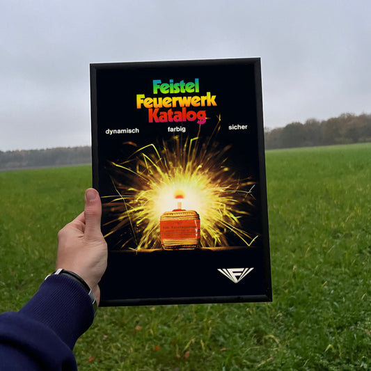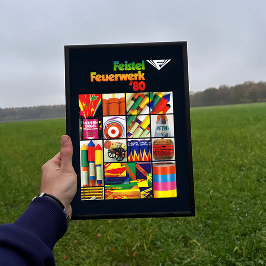 Feistel Feuerwerk Starlight Fontänen Raritäten Label eingerahmtes Poster