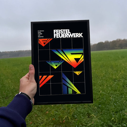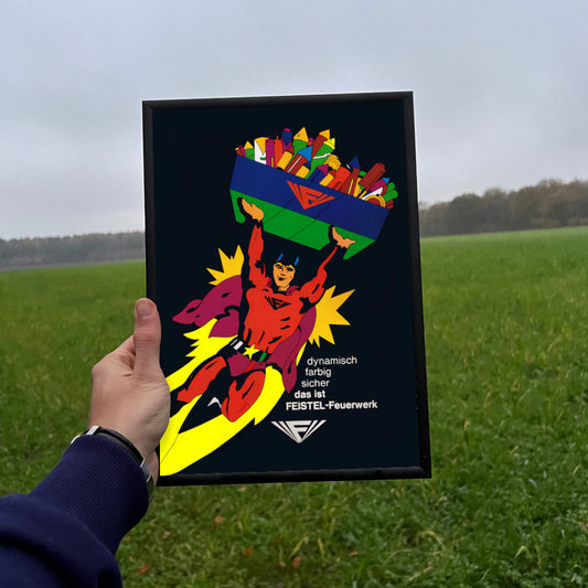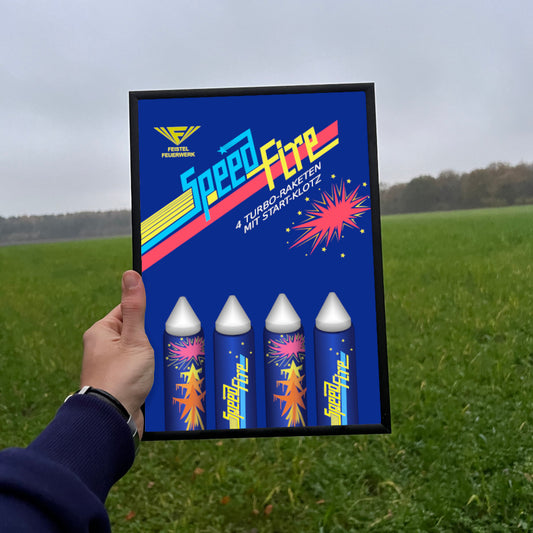 Feistel Feuerwerk Speedfire Raketen Raritäten Label eingerahmtes Poster
