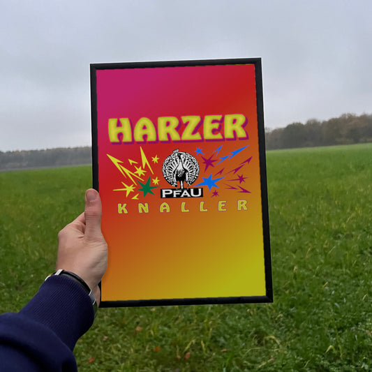 Pfau Harzer Knaller Raritäten eingerahmtes Poster
