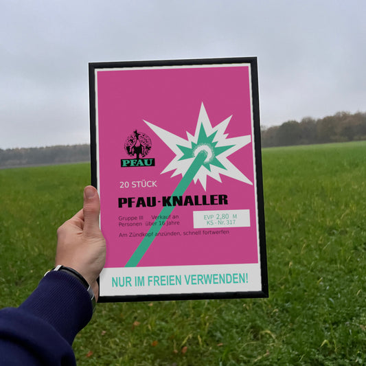 Pfau Pfau-Knaller Raritäten eingerahmtes Poster